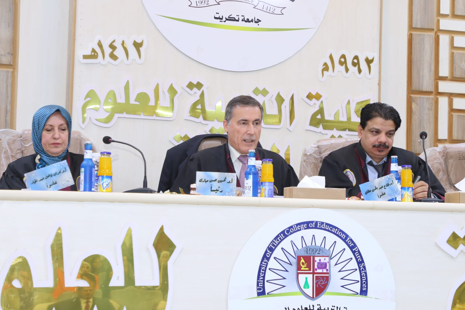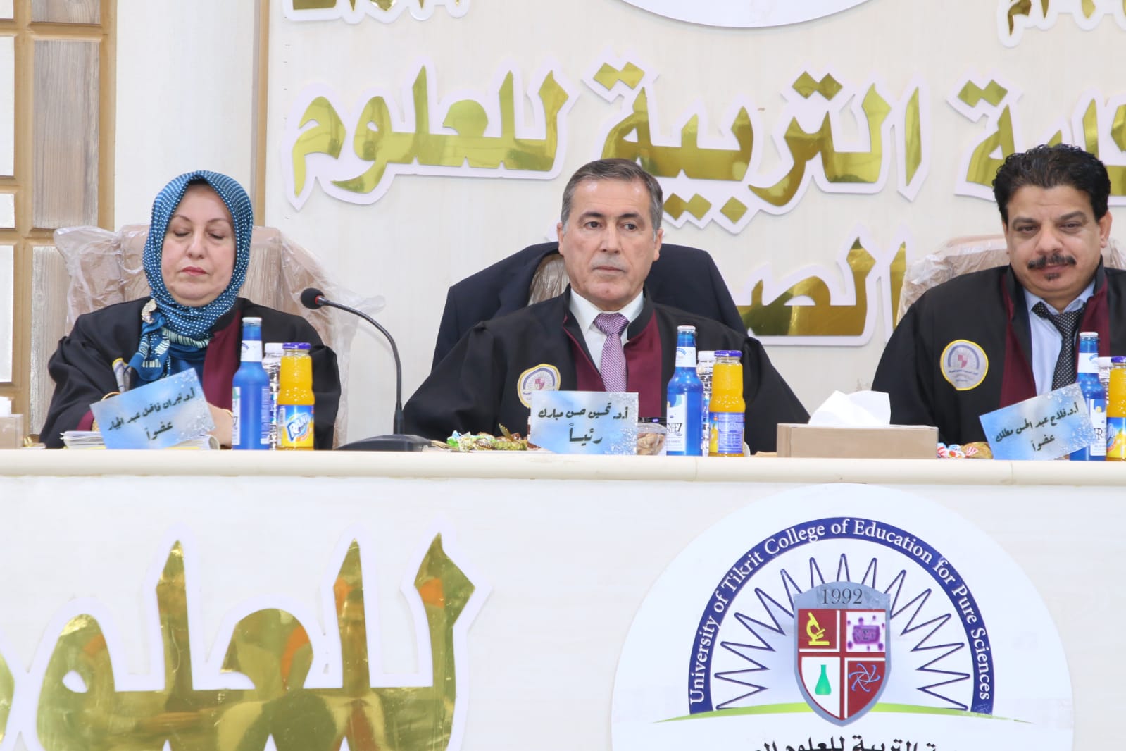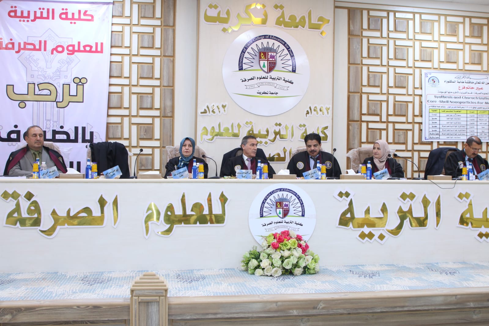 حضر بعدها رئيس الجامعة المناقشة وبارك للطالبة جهودها في هذه الاطروحة واشاد بالملاحظات العلمية للجنة المناقشة متمنيا الموفقية للجميع.