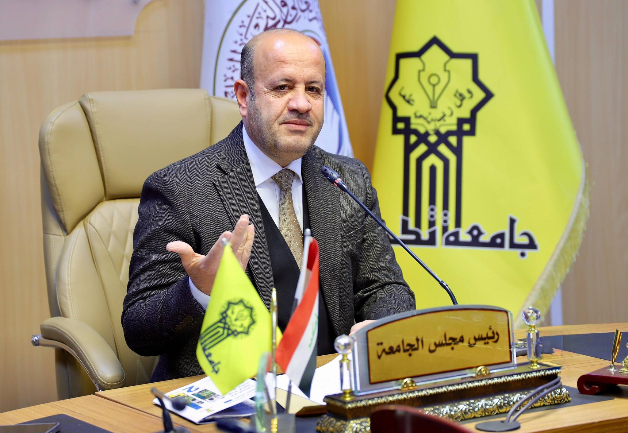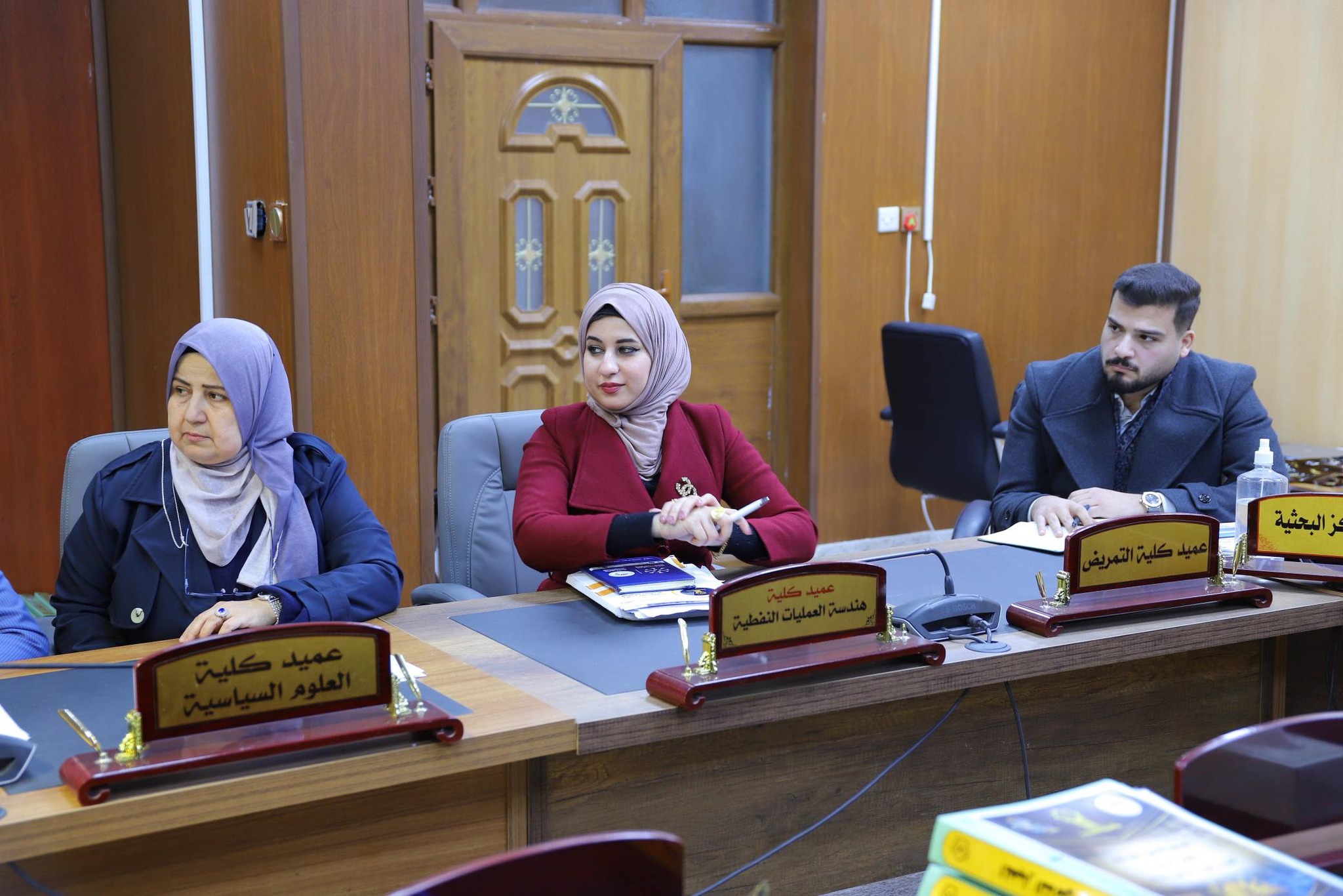 وجرى خلال الاجتماع مناقشة واقع الاعتماد المؤسسي في الجامعة، ومتابعة متطلبات ومعايير الاعتماد المعتمدة من قبل وزارة التعليم العالي والبحث العلمي، فضلاً عن استعراض مراحل التقدم المحرز في هذا الملف المهم، وآليات تعزيز الأداء المؤسسي والحوكمة الأكاديمية بما ينسجم مع معايير الجودة الشاملة.