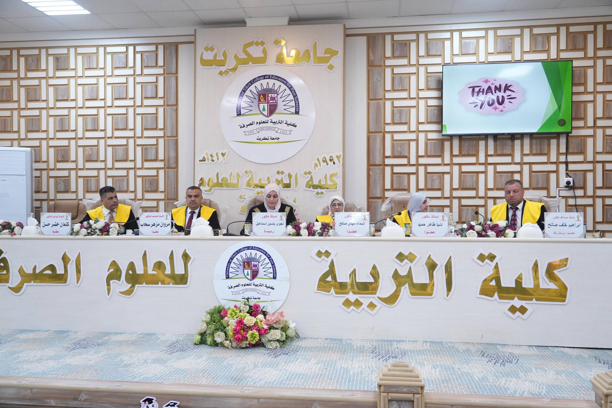 حضر رئيس جامعة تكريت، الأستاذ الدكتور وعد محمود رؤوف، وقائع مناقشة أطروحة دكتوراه في كلية التربية للعلوم الانسانية، والتي قدّمتها الطالبة وفاء عبد الله حسين في قسم اللغة الإنجليزية/ طرائق تدريس اللغة الإنجليزية.