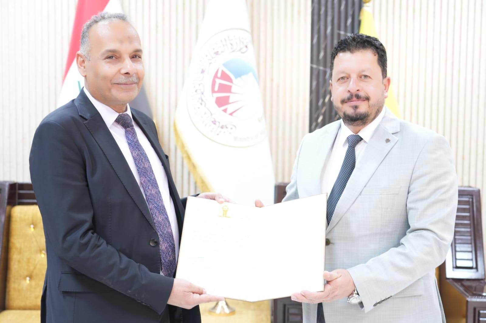 وفي ختام المناقشة أناب السيد عميد كلية العلوم الاستاذ الدكتور عبدالخالق علوان محيميد عن السيد رئيس الجامعة بتكريم