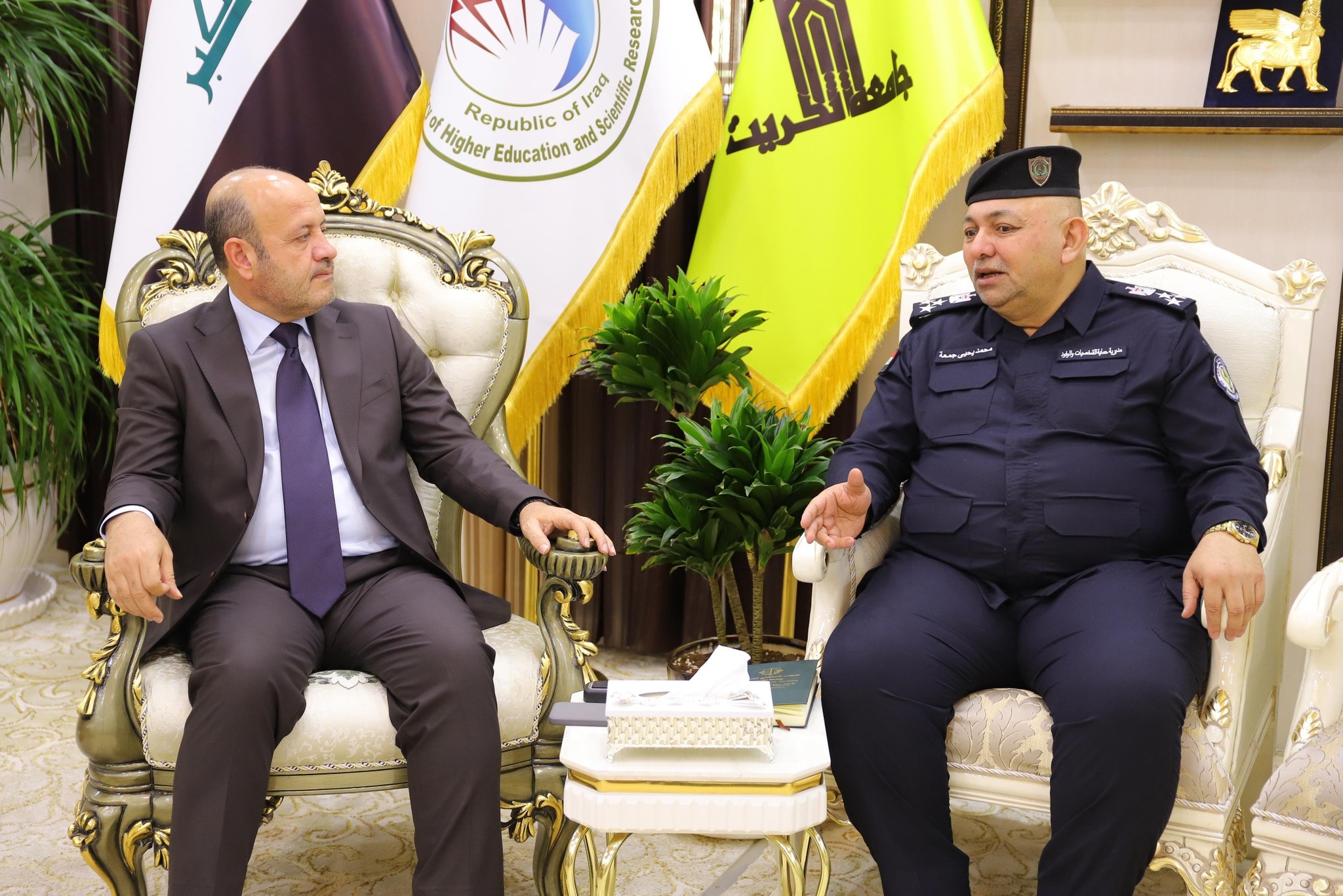 وخلال اللقاء، جرى بحث عدد من القضايا ذات الاهتمام المشترك، وفي مقدمتها أهمية تعزيز الأمن داخل الحرم الجامعي، وتسهيل الإجراءات التي تضمن سلامة الطلبة والمنتسبين والزائرين، فضلاً عن دعم الجهود الرامية إلى استقرار البيئة التعليمية والأكاديمية.