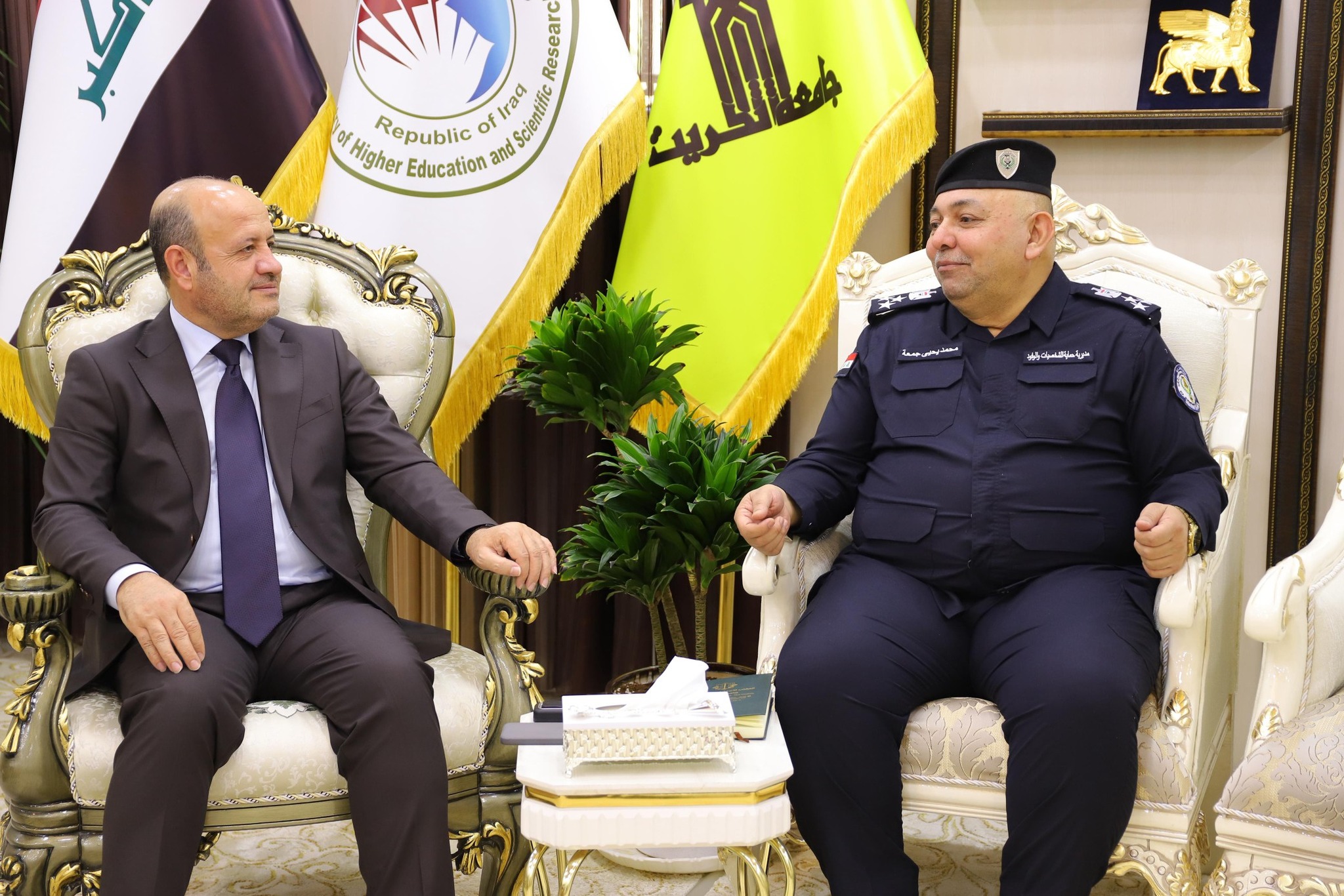 استقبل الأستاذ الدكتور وعد محمود رؤوف، رئيس جامعة تكريت، في مكتبه ، العميد محمد يحيى جمعة، مدير حماية شخصيات في محافظة صلاح الدين، في زيارة رسمية جاءت في إطار تعزيز التعاون والتواصل بين المؤسسات الأمنية والأكاديمية في المحافظة.