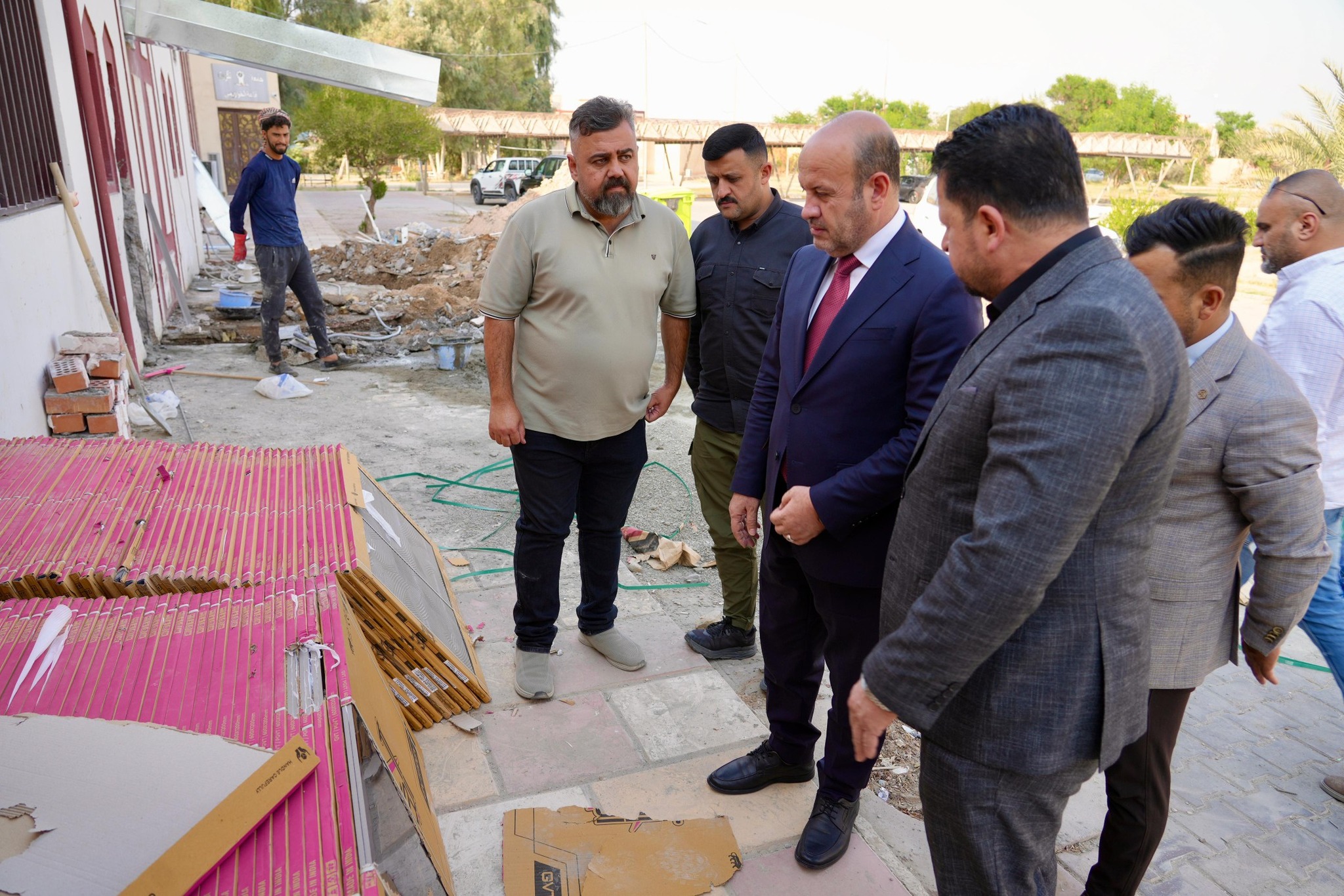 تابع الأستاذ الدكتور وعد محمود رؤوف، رئيس جامعة تكريت، اليوم أعمال الصيانة والترميم الجارية في قاعة الخوارزمي، والتي تشرف عليها كلية العلوم.