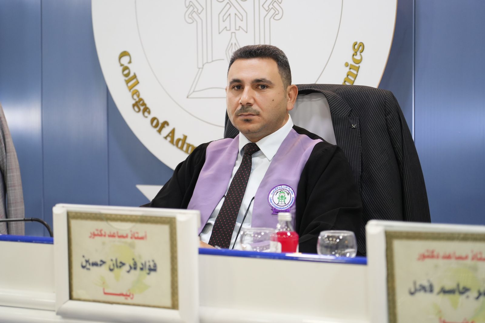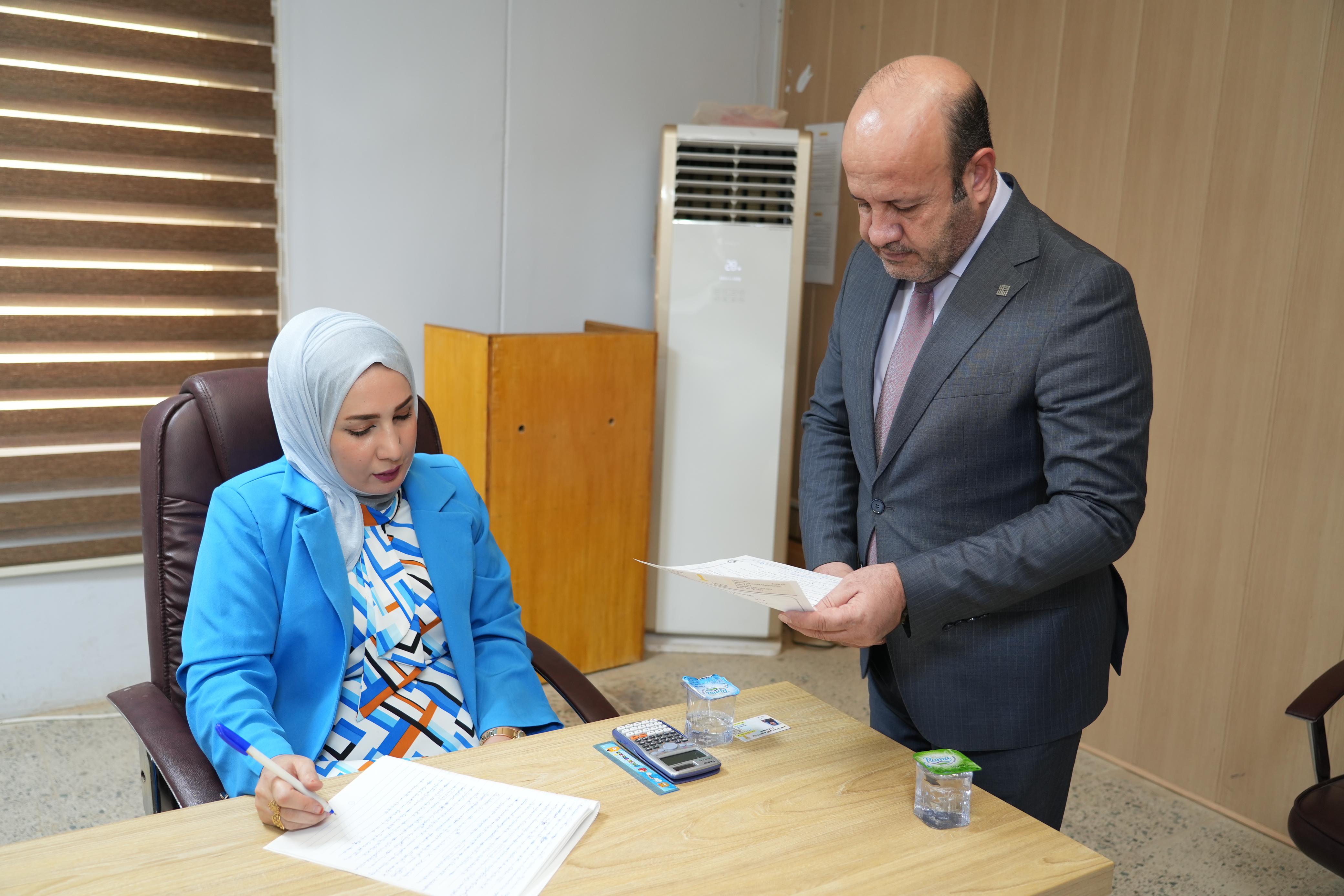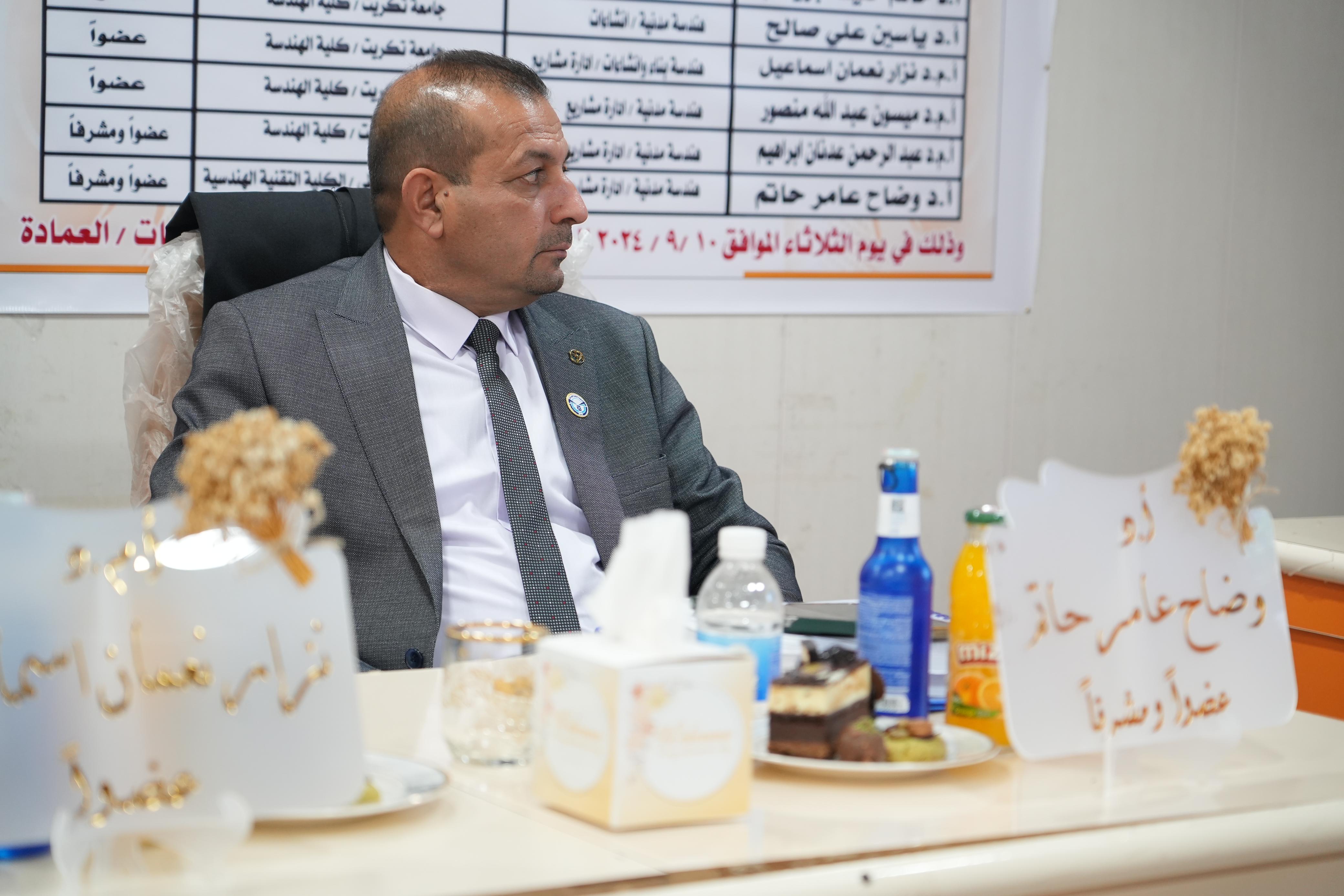 ضمن النهج المستمر لرئيس الجامعة في المشاركة وحضوره الشخصي والفاعل في مناقشات الرسائل والاطاريح العلمية حضر الاستاذ الدكتور وعد محمود رؤوف رئيس جامعة تكريت مناقشتين الاولى اطروحة دكتوراه بكلية الهندسة للطالبة (نضال عدنان جاسم) والثانية مناقشة رسالة ماجستير بكلية الادارة والاقتصاد للطالبة (رشا عبدالعزيز البدري)