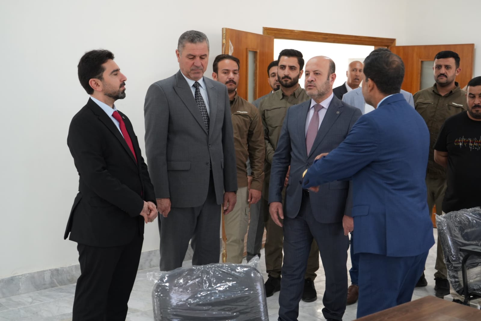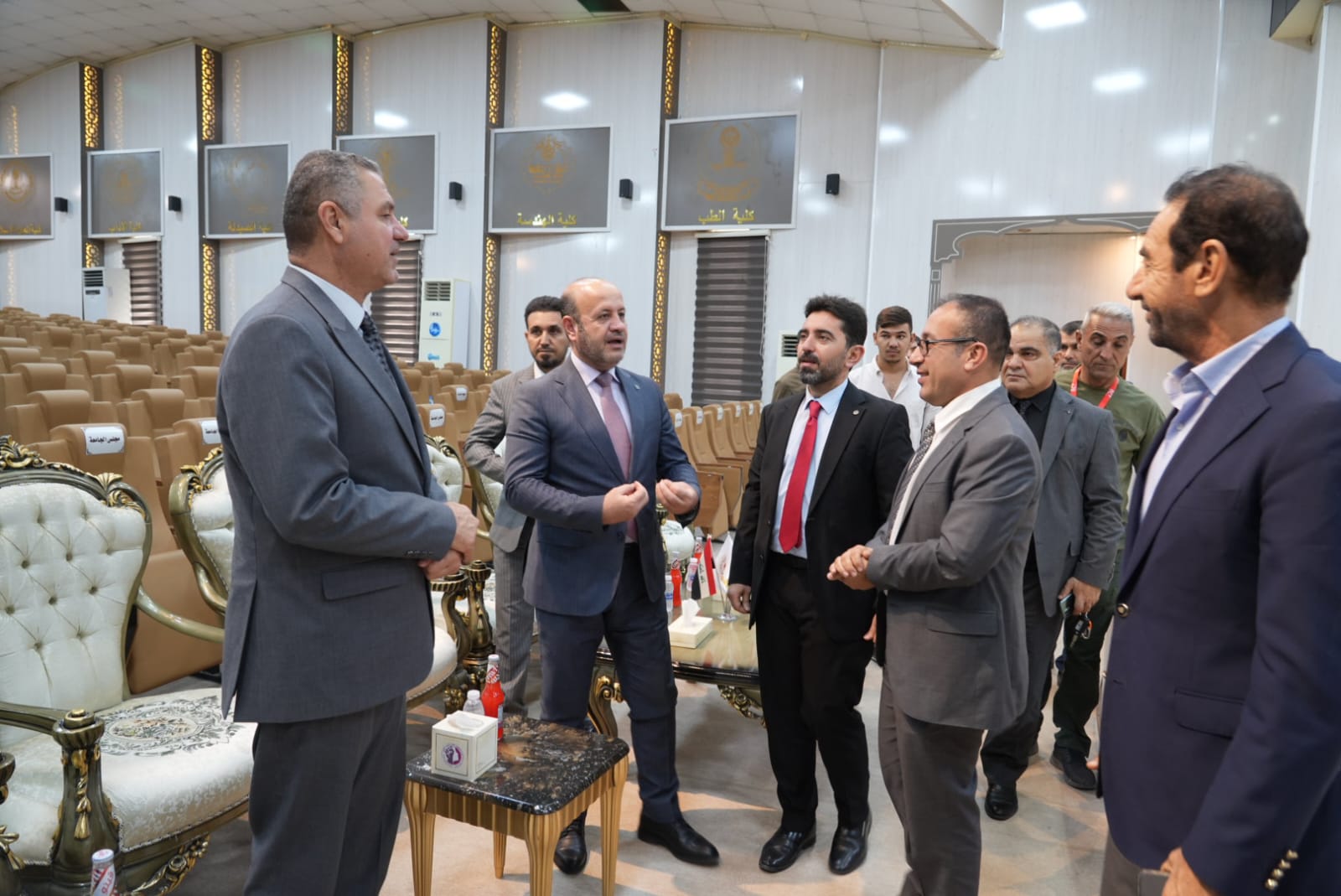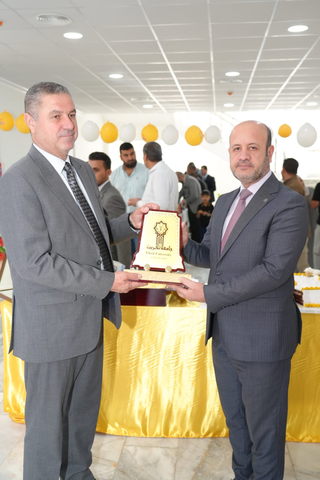 في اروقة واقسام البناية والاطلاع على دقة التنفيذ مباركين الجهود الدولية والمحلية التي أسهمت في هذا الانجاز الذي يخدم المسيرة العلمية والتربوية في جامعة تكريت