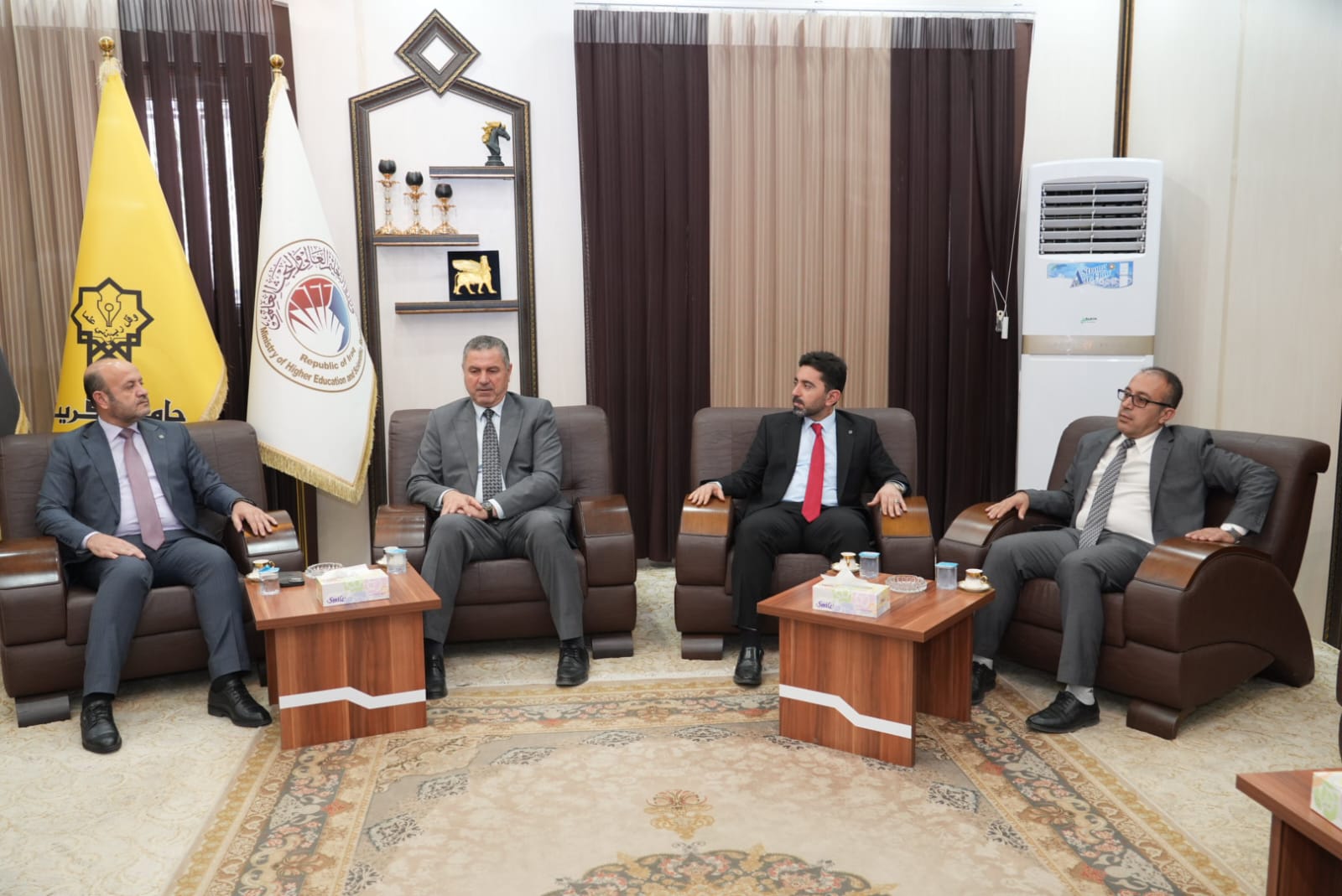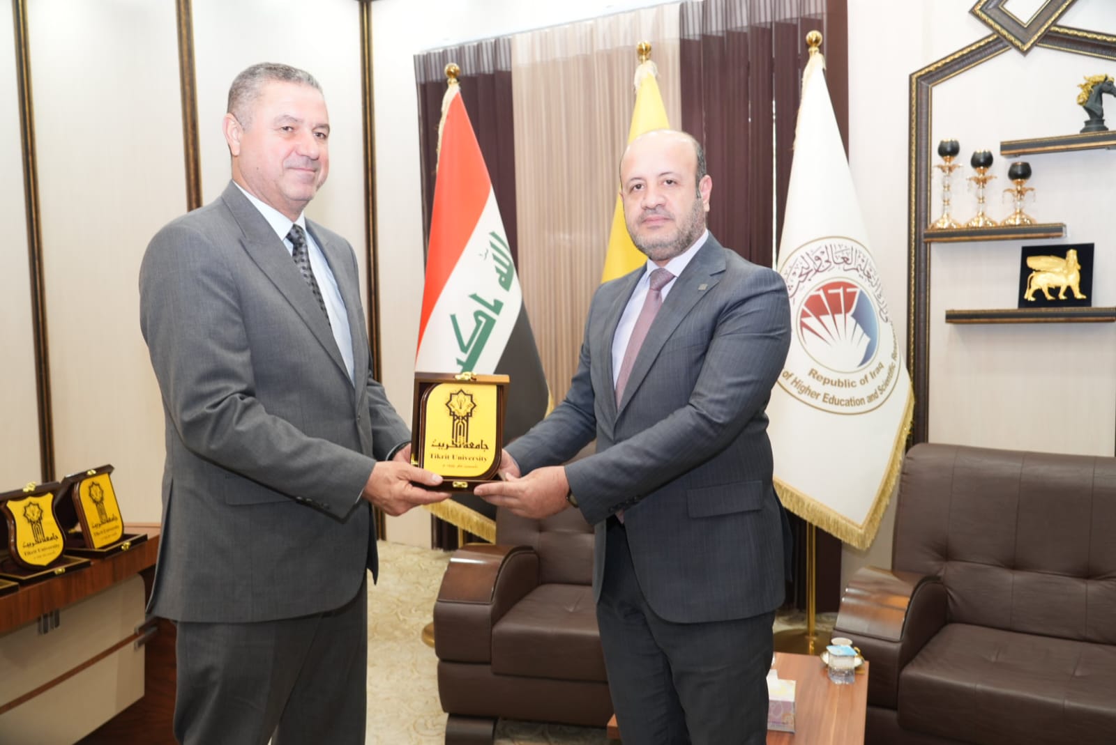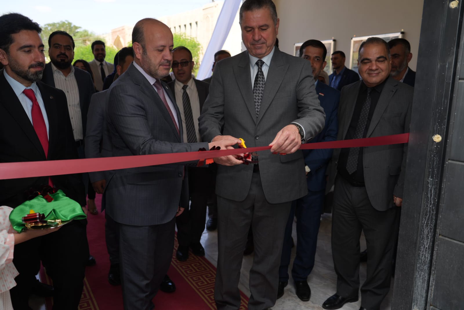 في اروقة واقسام البناية والاطلاع على دقة التنفيذ مباركين الجهود الدولية والمحلية التي أسهمت في هذا الانجاز الذي يخدم المسيرة العلمية والتربوية في جامعة تكريت