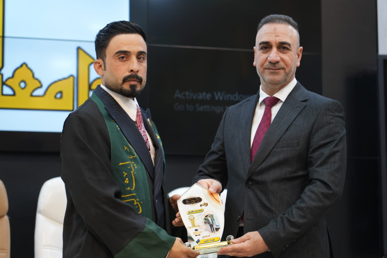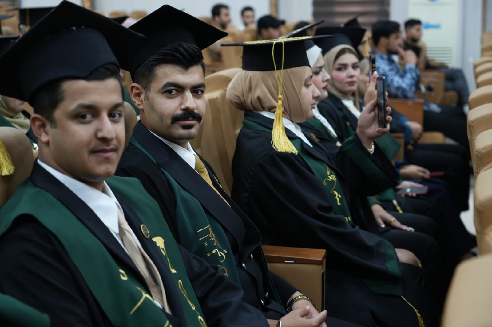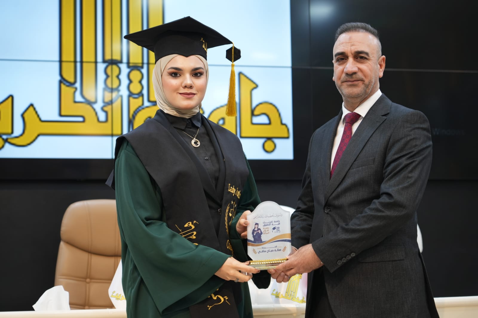 ثم القى ممثل الطلبة كلمة الطلبة الخريجيين والتي اثنى فيها على جهود الكلية والجامعة والاساتذة وماقدموه من الدعم الكامل والذي بدوره أدى الى خلق جيل مثقف وقادرٍ على حمل الرسالة وتحقيق غايتها في خدمة المجتمع.
