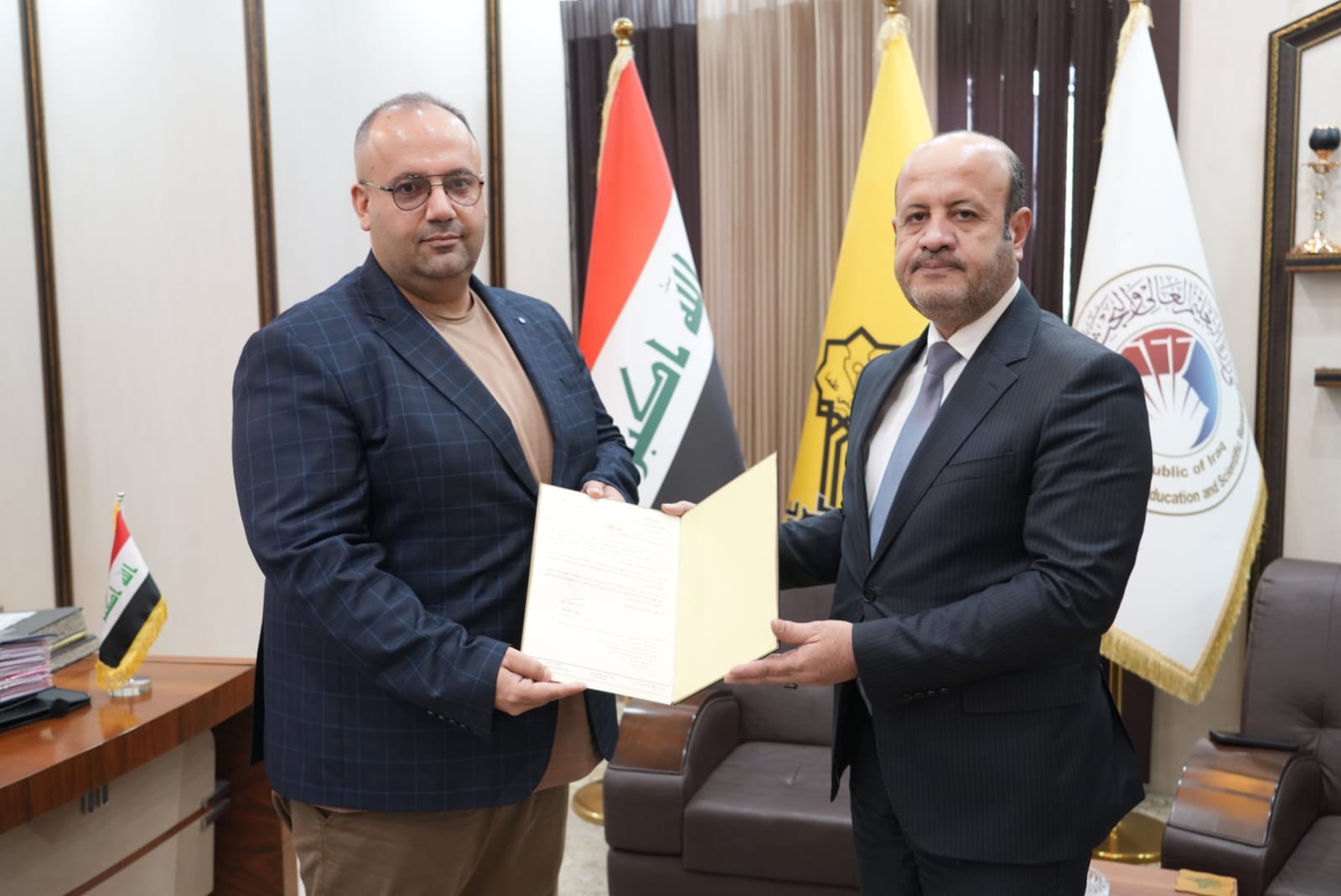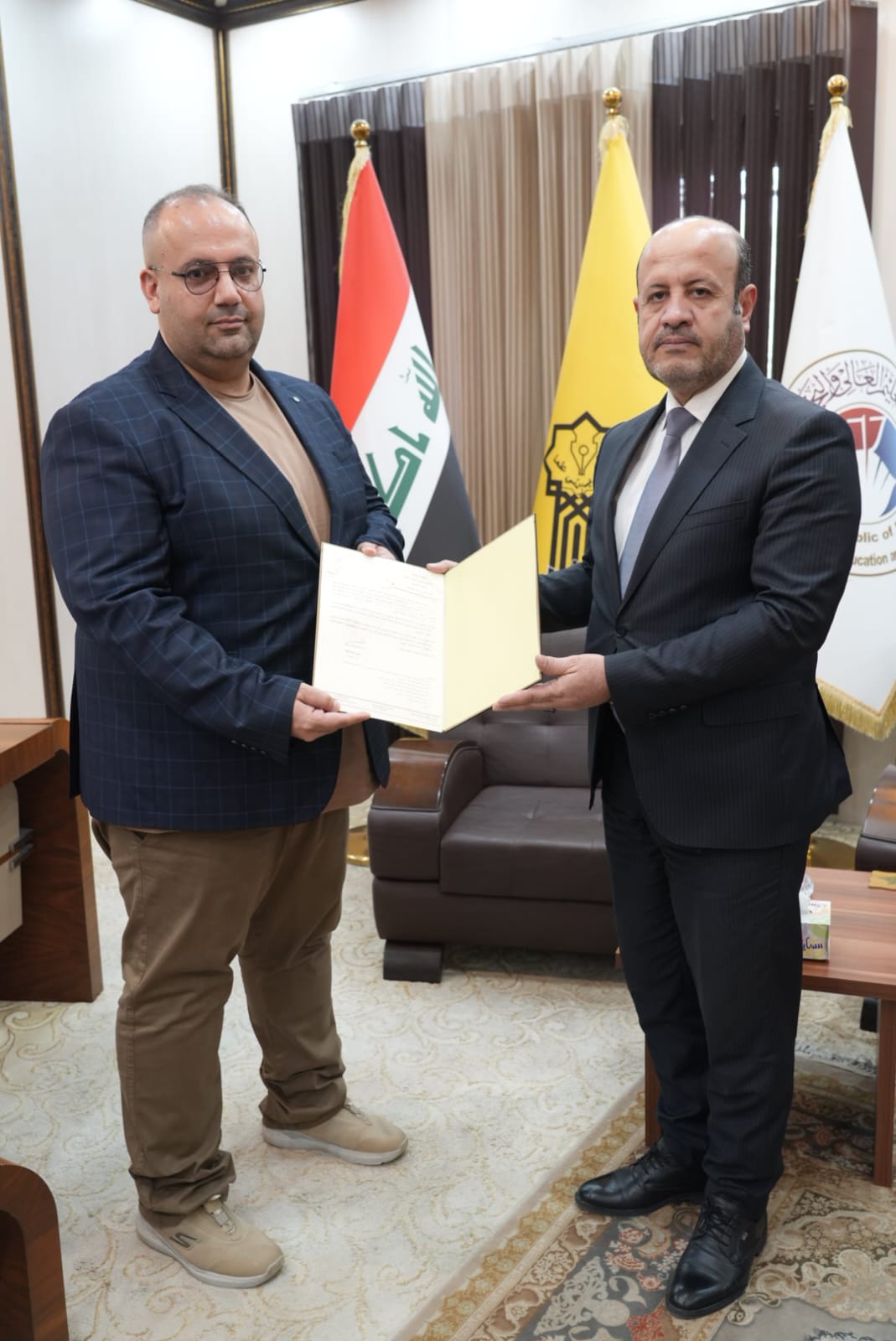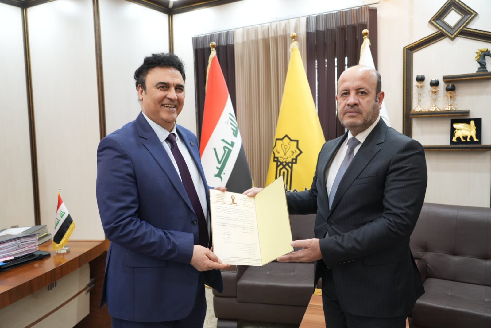 استقبل الاستاذ الدكتور وعد محمود رؤوف رئيس جامعة تكريت في مكتبه اليوم الثلاثاء ٨/ ١٠/ ٢٠٢٤ الاستاذ الدكتور سعد رمضان لطيف العميد الجديد لكلية الهندسة حيث تسلّم الأمر الوزاري الخاص بتعيينه بمنصب عميد كلية الهندسة بالاصالة خلفا للاستاذ الدكتور خالد حمود مضحي، وقدم رئيس الجامعة التهنئة للدكتور سعد رمضان، متمنيا له التوفيق والنجاح.