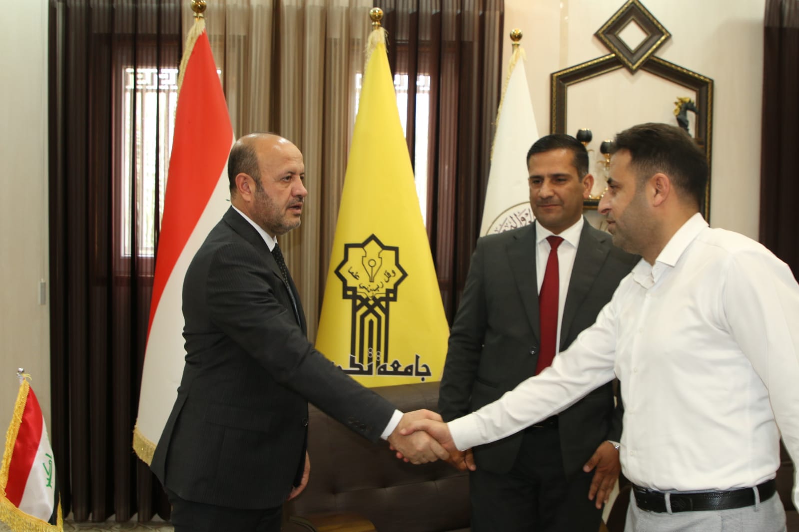 استقبل الاستاذ الدكتور وعد محمود رؤوف رئيس جامعة تكريت في مكتبه المهنئين في رئاسة الجامعة وبحضور مساعد رئيس الجامعة للشؤون الإدارية ، إذ قدم الحاضرون التهاني للسيد رئيس الجامعة بمناسبة عيد الفطر المبارك معبرين عن صادق مشاعرهم بهذه المناسبة داعين الله عز وجل أن يعيدها عليه بموفور الصحة والتقدم والنجاح، من جانبه اعرب رئيس الجامعة عن سعادته بهذا اللقاء شاكرا لهم حضورهم سائلا الله العلي القدير أن يعيد هذه المناسبة عليهم وعلى الأمة الإسلامية جمعاء وهم في وافر الصحة والسلامة وأن يتقبل من الجميع صيامهم وقيامهم وصالح أعمالهم مشددا ان جامعة تكريت بكافة منتسبيها هي أسرة واحدة متمنيا للجميع دوام الموفقية خدمة لجامعتنا وعراقنا الحبيب.