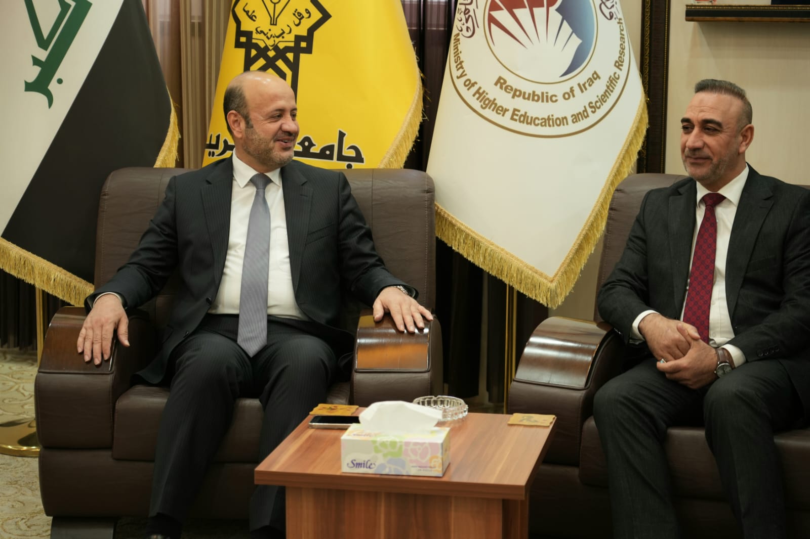 في اطار برنامج التعاون العلمي الذي اقرته وزارة التعليم العالي والبحث العلمي بين الجامعات الحكومية والكليات والجامعات الاهلية ومداً لجسور التعاون المشترك بينها ، استقبل رئيس جامعة تكريت الأستاذ الدكتور وعد محمود رؤوف في مكتبه اليوم الخميس الموافق 25/4/2024 رئيس جامعة الإمام جعفر الصادق (عليه السلام ) فرع صلاح الدين الاستاذ المساعد الدكتور محمد حكمت عبد لبحث سبل التعاون العلمي الاكاديمي بين الجامعتين