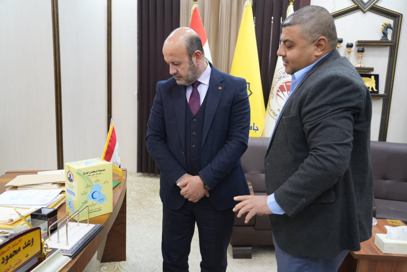 تلقّى الاستاذ الدكتور وعد محمود رؤوف رئيس جامعة تكريت عددٍ من المؤلفات العلمية والادبية التي قدّمها عدد من منتسبي الجامعة، وبارك السيد رئيس الجامعة جهودهم العلمية والادبية التي تأتي في إطار سعيهم الدؤوب في توثيق خبراتهم العلمية وافادة الوسط الجامعي منها، من جانبهما شكر الضيفان حفاوة الترحاب ومباركة السيد رئيس الجامعة لهما.