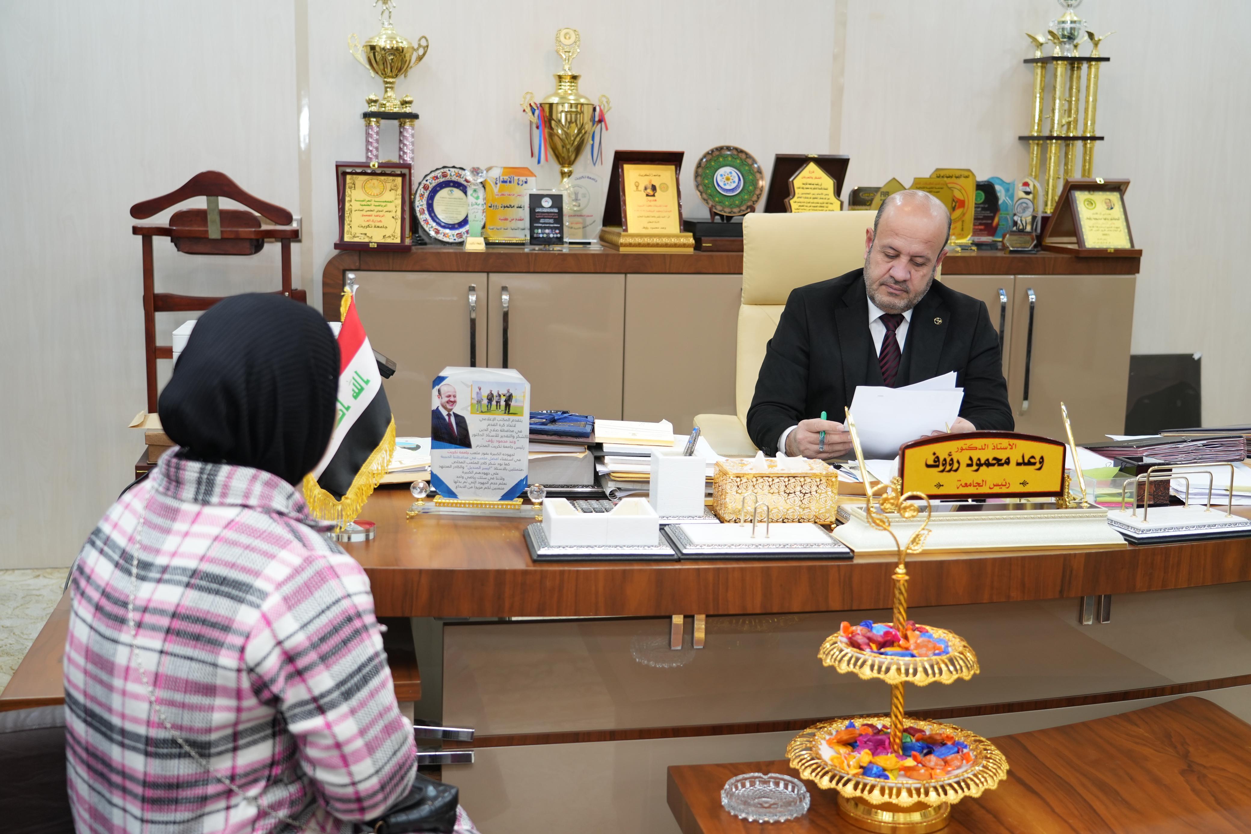 واستمع السيد رئيس الجامعة إلى مشاكلهم واحتياجاتهم وأوعز بمتابعتها والعمل على حلها وفقاً للصلاحيات الممنوحة والتعليمات والأطُر القانونية المعمول بها.