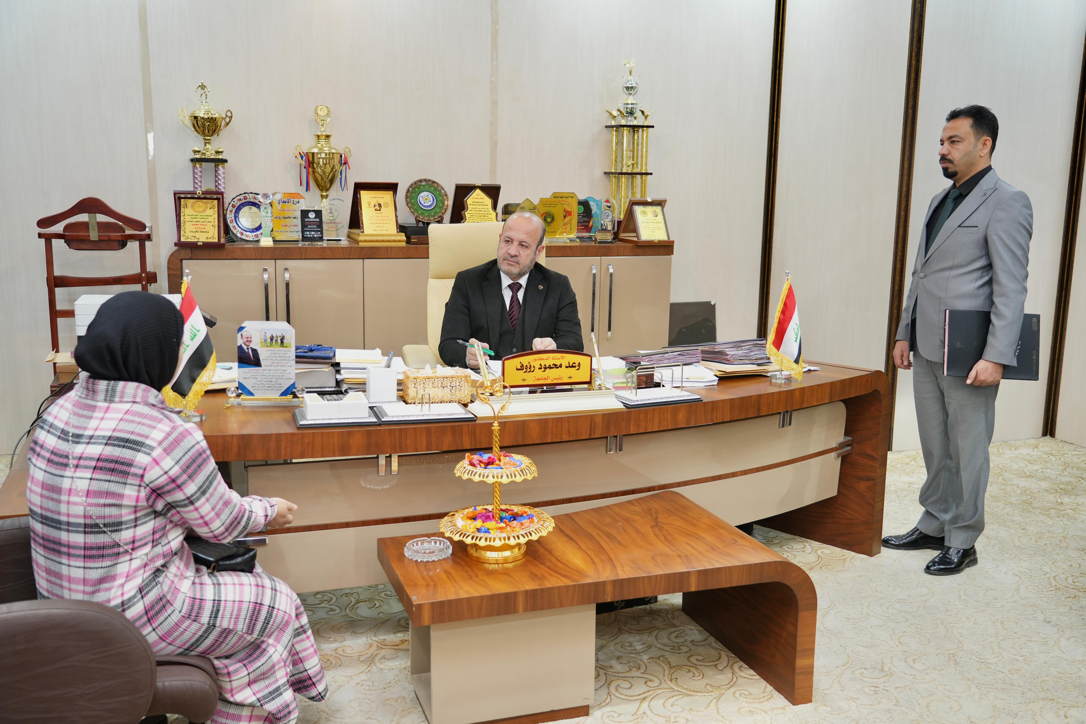 استقبل الأستاذ الدكتور وعد محمود رؤوف رئيس جامعة تكريت في مكتبه اليوم الثلاثاء الموافق ٤/ ٢/ ٢٠٢٥ عدداً من طلبة ومنتسبي الجامعة والمواطنين ضمن برنامج المقابلات الأسبوعية