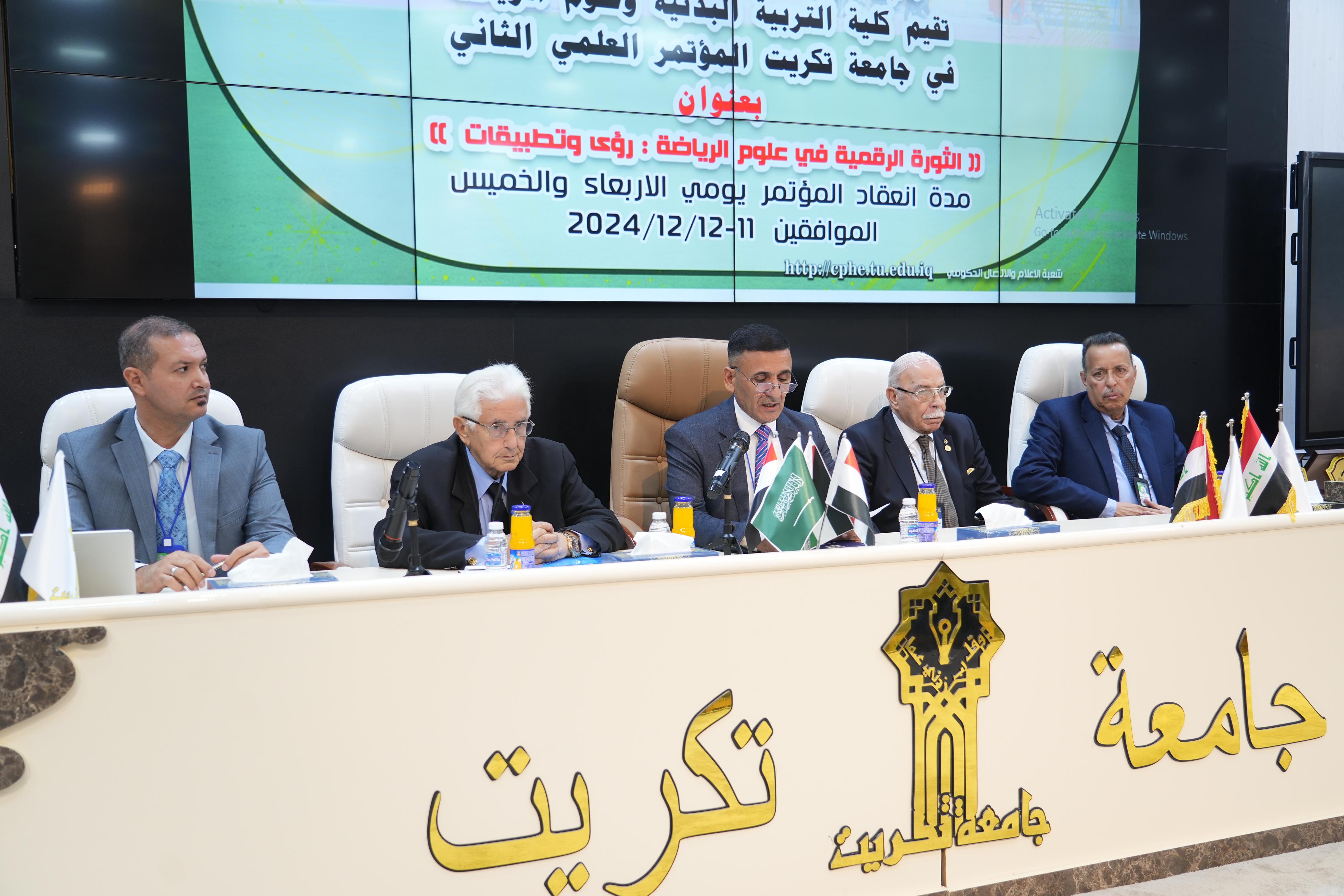 برعاية معالي وزير التعليم العالي والبحث العلمي الدكتور نعيم العبودي وبأشراف الأستاذ الدكتور وعد محمود رؤوف رئيس جامعة تكريت وبمتابعة الاستاذ المساعد الدكتور عبدالله طياوي عميد كلية التربية البدنية وعلوم الرياضة عقدت كلية التربية البدنية وعلوم الرياضة وبحضور الاستاذ الدكتور محمد ضايع وكيل وزارة التربية للشؤون الادارية والسادة رئيس واعضاء لجنة عمداء كليات التربية البدنية وعلوم الرياضة في الجامعات العراقية ومساعدي رئيس الجامعة للشؤون العلمية والادارية وعدد من الباحثين من الجامعات العربية والعالمية بالاضافة الى الباحثين العراقيين مؤتمرها العلمي الثاني تحت شعار (الثورة الرقمية في علوم الرياضية رؤى وتطبيقات)