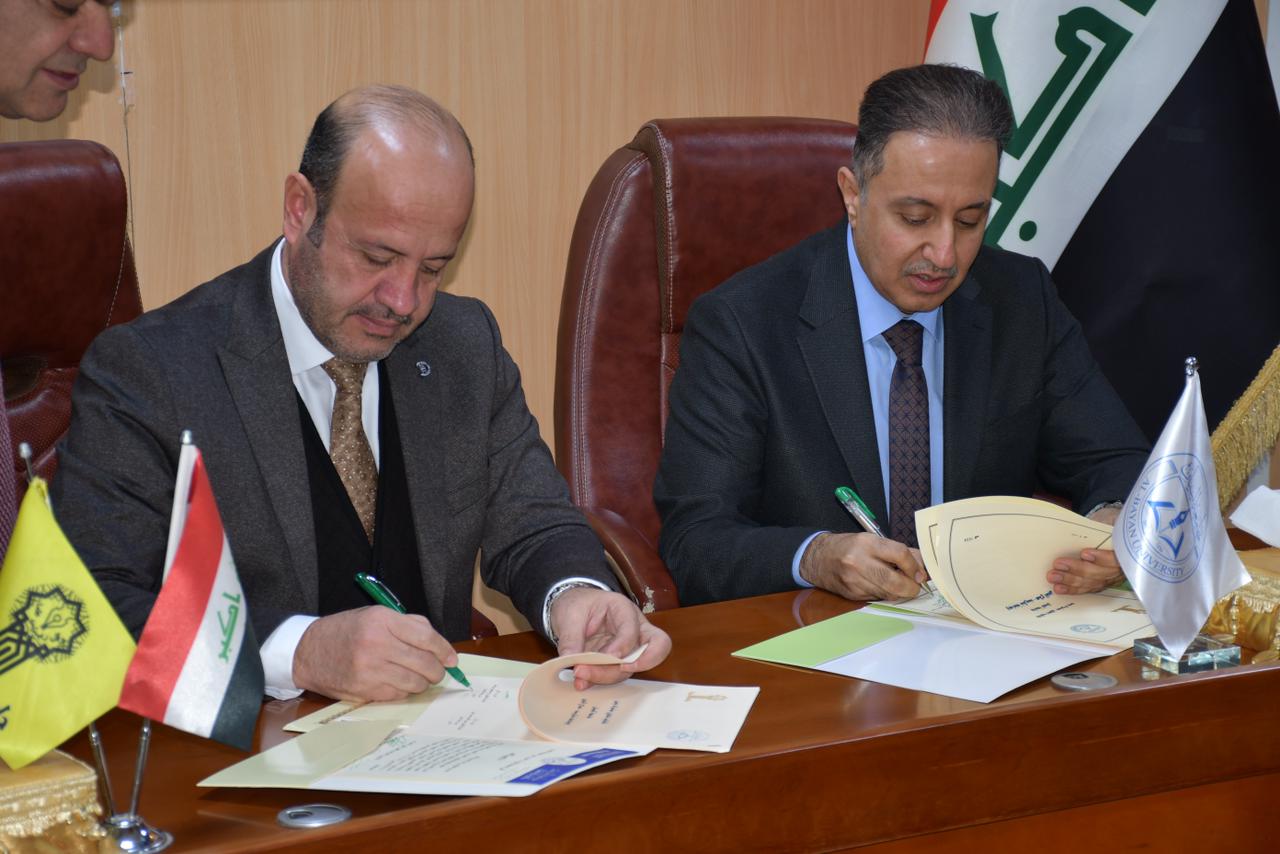وبعد الترحيب بالوفد الضيف تم توقيع اتفاقية تعاون مشترك بين جامعة تكريت يمثلها الاستاذ الدكتور وعد محمود رؤوف رئيس جامعة تكريت وجامعة البيان يمثلها الاستاذ الدكتور حيدر طالب الامارة رئيس الجامعة وتضمنت الاتفاقية عدة مواد وفقرات منها تطوير الخطط الدراسية وتوحيد المناهج وتبادل الكتب والمصادر بالاضافة الى اقامة الورش التدريبية واستخدام المختبرات وغيرها من الفقرات الاخرى ، قام الوفد الضيف بعدها بجولة شملت عدة كليات واروقة الجامعة وشاهد في قاعة الخوارزمي فلم فديو عن عن واقع الجامعة وماشهدته وتشهده من حملة اعمار وتطور علمي واكاديمي، يذكر ان هذه الاتفاقية تأتي للارتقاء بمستوى الجامعتين وجعلها في مستوى الجامعات العريقة ومن اجل زيادة اواصر التعاون بينهما وفتح افاق تعاون جديدة في المجالات الاكاديمية ورفع المستوى العلمي والبحثي.